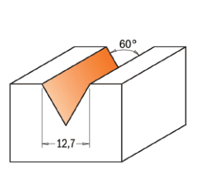 Fresa de Metal Duro (HWM) de Alta Calidad, con 60 grados de angulación. Puede ser aplicada para escrituras y dibujos en la superficie de las piezas. Puede ser usada en CNC Router, Máquinas Punto a Punto y Pantógrafos CNC. Consulte nuestro equipo técnico para más informaciones. Aplicación: mecanizado de escritura y dibujos en bajo relieve. Materiales como madera maciza, derivados y laminados. Elevada eficacia y buena velocidad de avance. Para montar en soportes o adaptadores para centros de mecanizado, máquinas punto a punto y pantógrafos CNC.